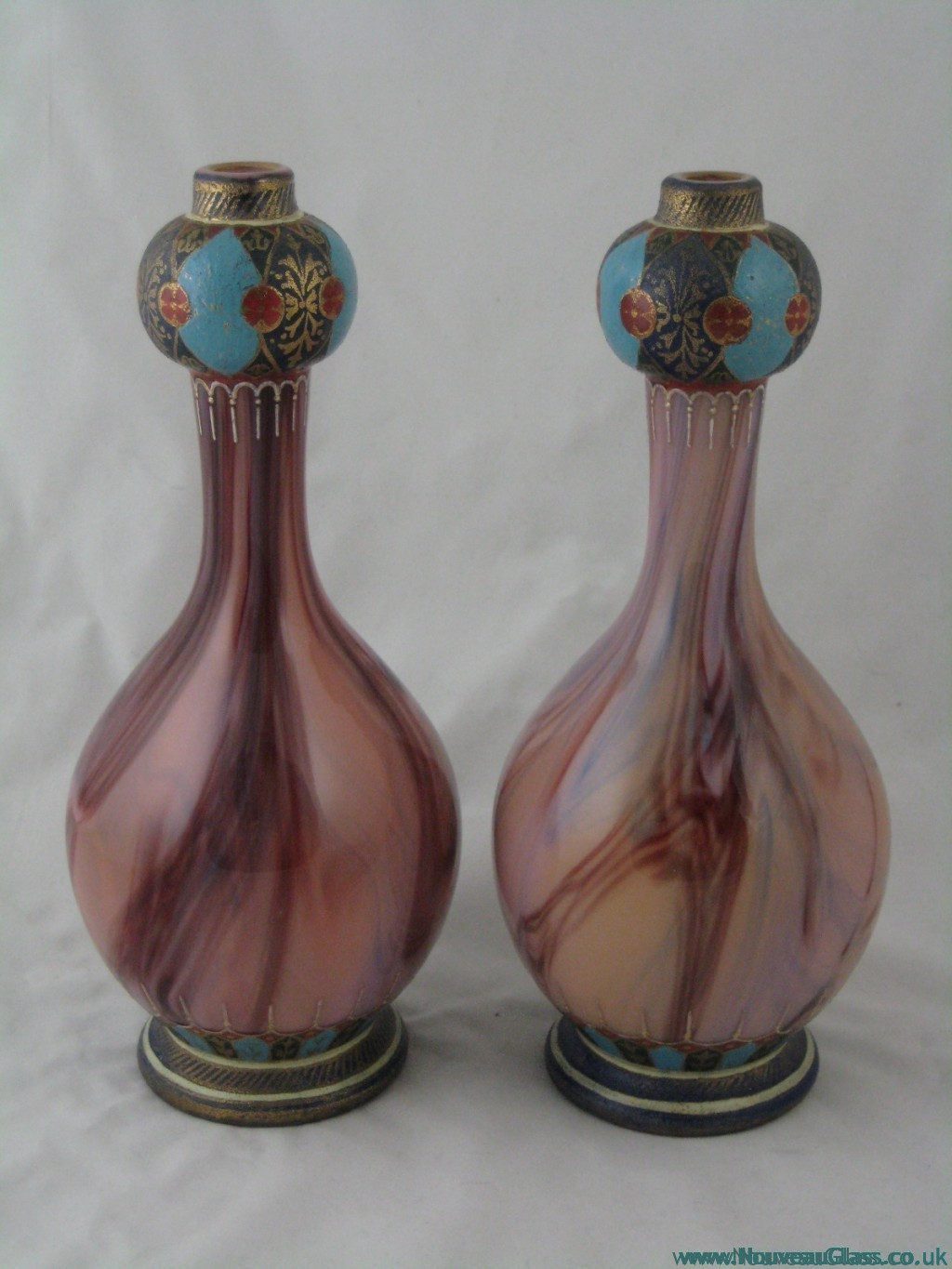 Art Nouveau glassware known for intricate enamel, vibrant colors, and Bohemian craftsmanship.