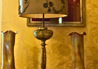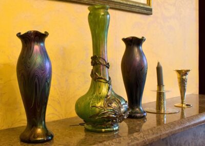 Bohemian glass renowned for radiant iridescence, fluid Art Nouveau shapes, and innovative metallic finishes.