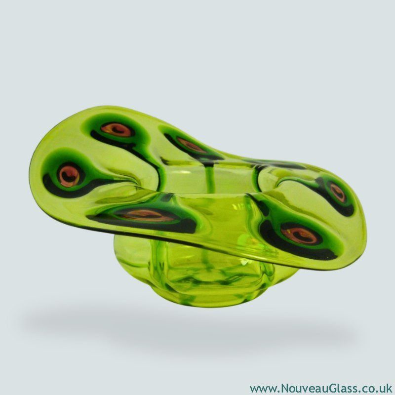 Bohemian art glass distinguished by bold iridescence, organic forms, and experimental surface textures.